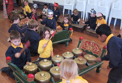 An Indonesian gamelan will be brought to your school. Instruments include Saron, Bonang, Bonang penerus, Kendang, Kempul, Kethuk, Kenong and Gong. Upper Primary & Secondary students will actually learn to play a genuine gamelan song. Juniors will experiment with the fascinating sounds that the instruments make, to create their own patterns.