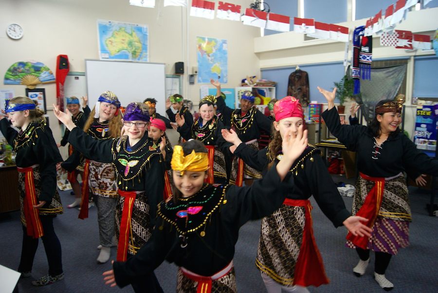 Students will learn one of the interesting dances from Asia. We specialize in the dances of Japan, China and Indonesia. From Japan we have the Sakura dance, Naruko dance, Hanagasa dance, Soran Bushi and the Tanko bushi dance. From China we have the Umbrella dance, the Ribbon dance, the Fan dance, Handkerchief dance and the Kung fu fan dance. We also offer Chinese lion dance workshops where your students work in groups of 3, 2 sharing a lion costume, with 1 holding a teaser out the front. From Indonesia we have the Deer dance, Parrot dance, Plate dance, Warrior(Rampak) dance, Umbrella dance, Mask dance or the Butterfly dance.