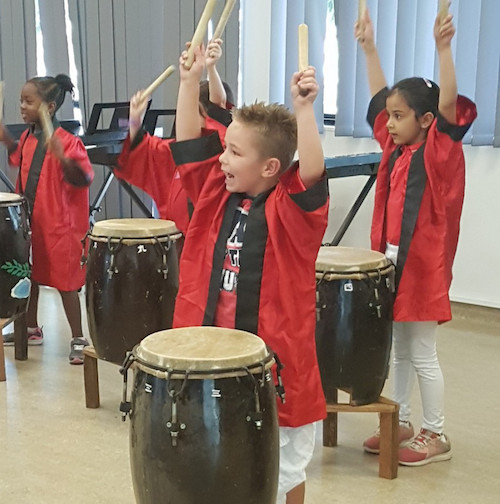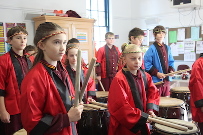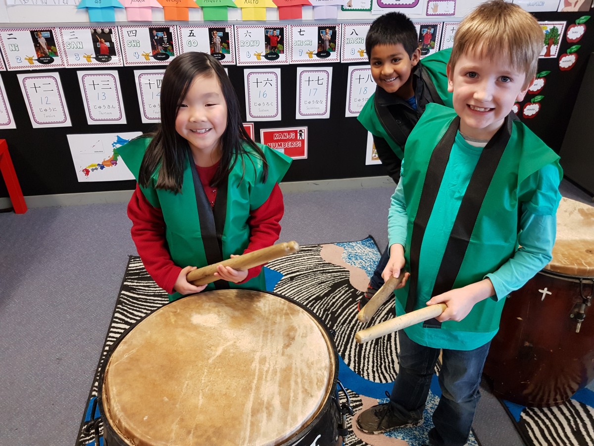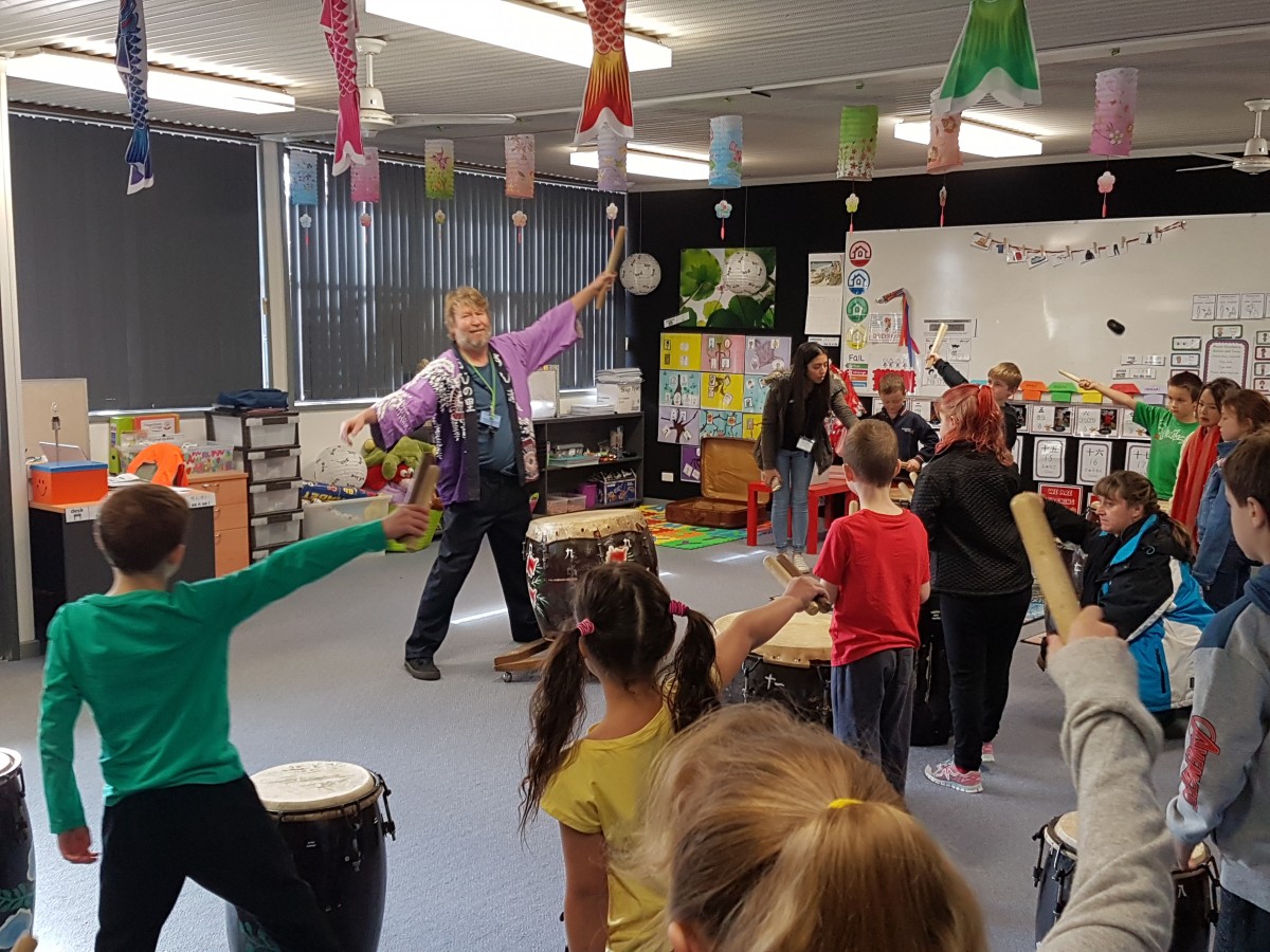 A class sets of Taiko drums are brought to your school. We have 10 full size (50cm) taiko and 10 medium taiko (35cm). One student for the medium and one or two for the full size, to explore some taiko rhythms. Workshops are adjusted to suit the particular age level of the students. You will be amazed at what can be achieved by your students in a limited time.