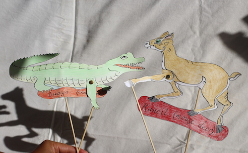 Students will make a shadow puppet from cardboard. Students can choose from the Ramayana series (Rama, Sinta, Rahwana, Dragon, Garuda) or Kancil the mouse deer or other Asian animals. Most puppets have moving arms, legs or wings. All materials provided.
